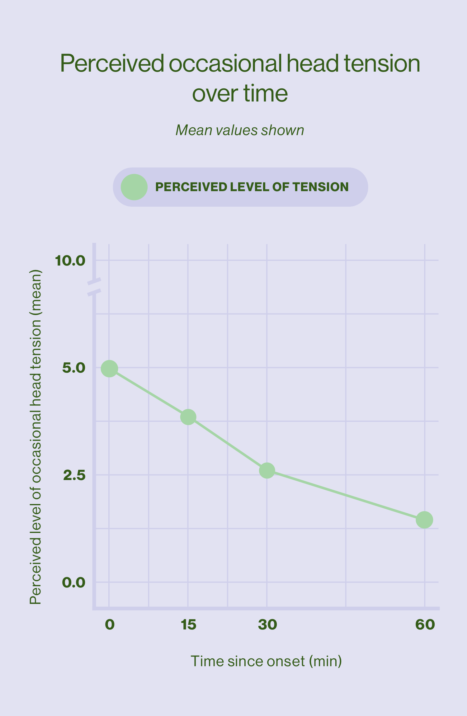 79% of participants saw a decrease in feelings of occasional head tension after 30 minutes.*