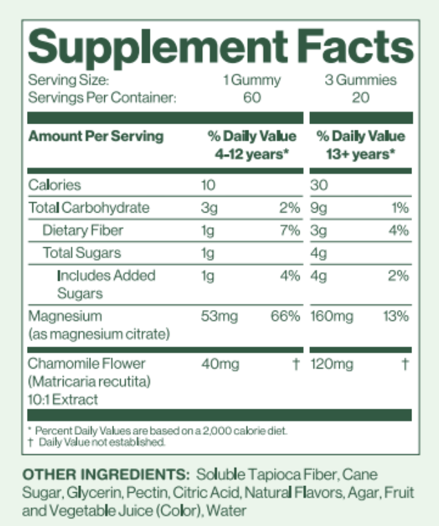 - Gentle Blend of Magnesium Citrate + Soothing Chamomile