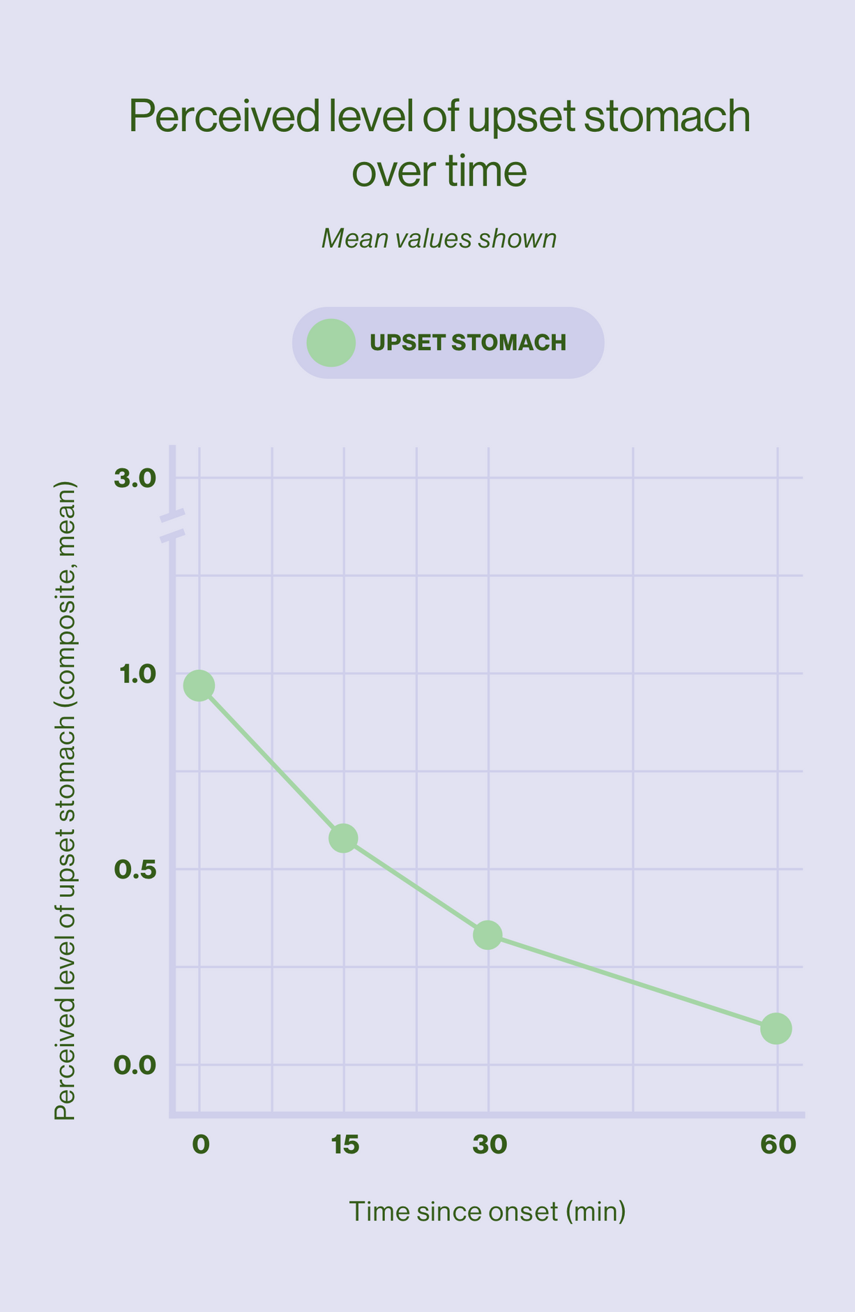 94% of participants saw a decrease in feelings of upset stomach after 30 minutes.*